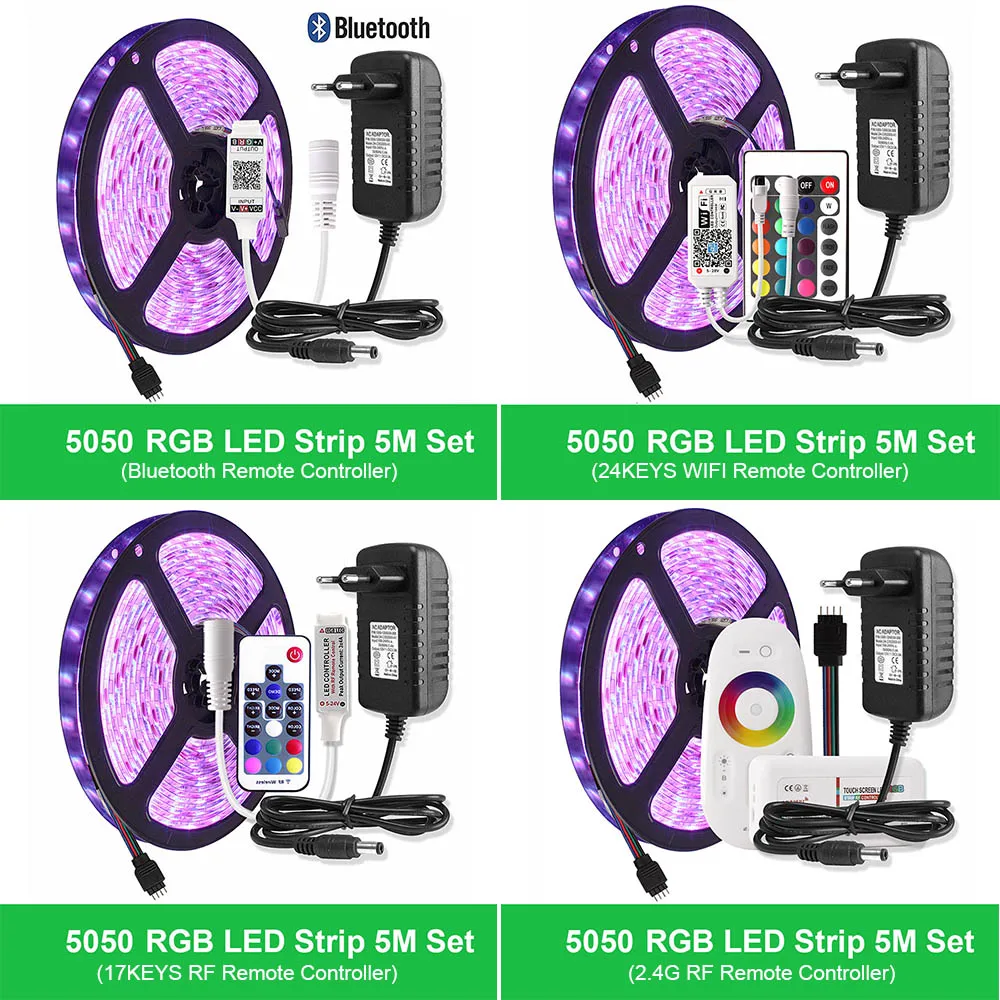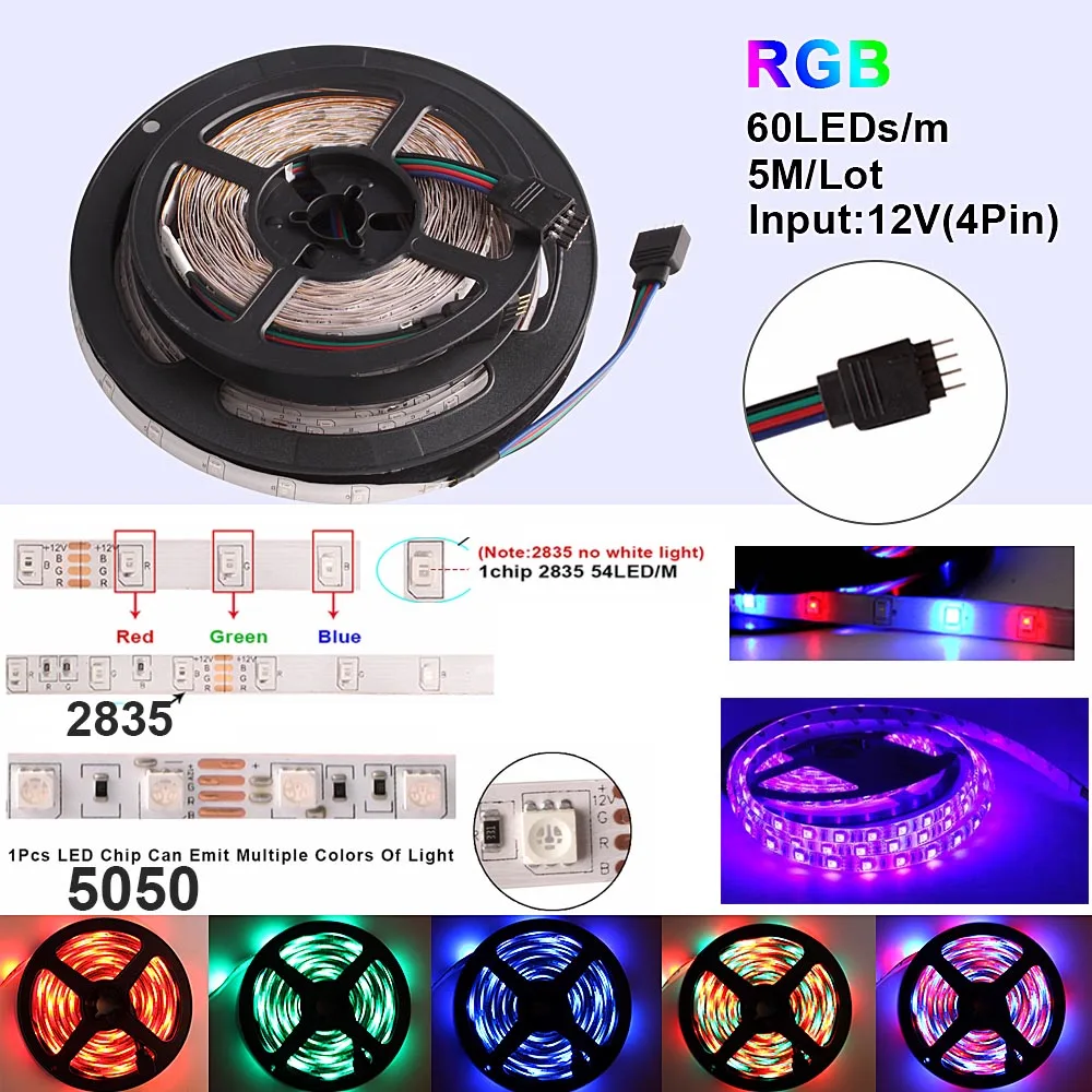 5050 RGB LED Strip 12V Waterproof Dimmable Flexible Neon Lights Fita Led RGB Tape Tira LED WiFi 24keys/Bluetooth/2.4G Remote Set : Click Here LED Night Light for Kid USB LED Strip RGB Night Lamp bedroom Closet Cabinet Stairs Lights 5V 5050 5M 3M 4M TV Backlight Lighting : Click Here WIFI LED Strip Waterproof 2835 5M RGB Tape Tira LED Strip 220V Neon Ribbon Light + 24Key Remote Controller 12V Power Adapter Set : Click Here