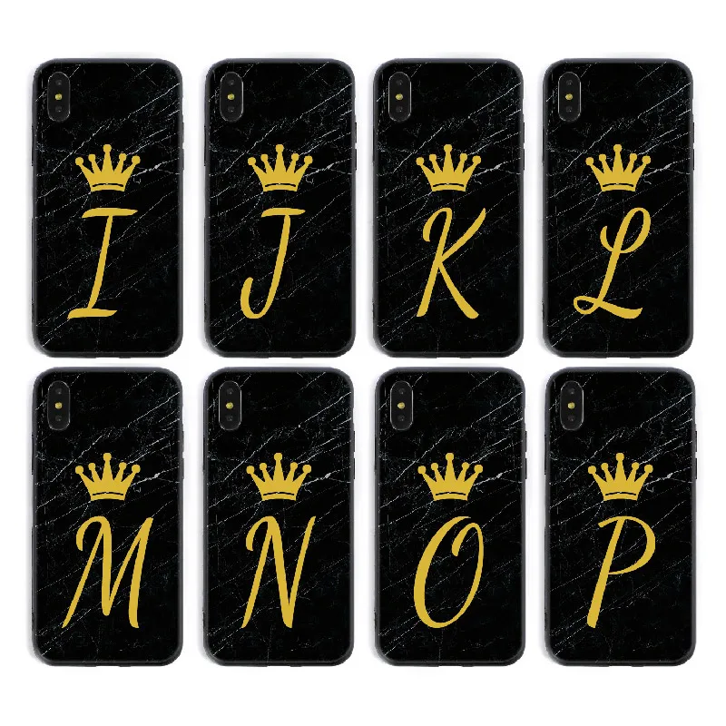 Promo Custom Crown Classy Queen Initials Alphabet Phone Case Cover For iPhone XS Max X XR 11 Pro Max 8 8P